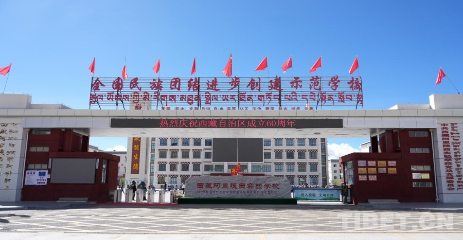 中國(guó)西藏網(wǎng)訊 平均海拔4500米的阿里,擁有這樣一座現(xiàn)代化校園——窗明幾凈的教室里書(shū)聲瑯瑯,絳紅色的塑膠跑道鋪展如新,各類(lèi)多功能教室內(nèi)設(shè)施設(shè)備一應(yīng)俱全,一幢幢教學(xué)樓規(guī)整而建。西藏阿里陜西實(shí)驗(yàn)學(xué)校便如此,坐落于巍峨雄偉的燕尾山腳下,立德樹(shù)人,成風(fēng)化人。