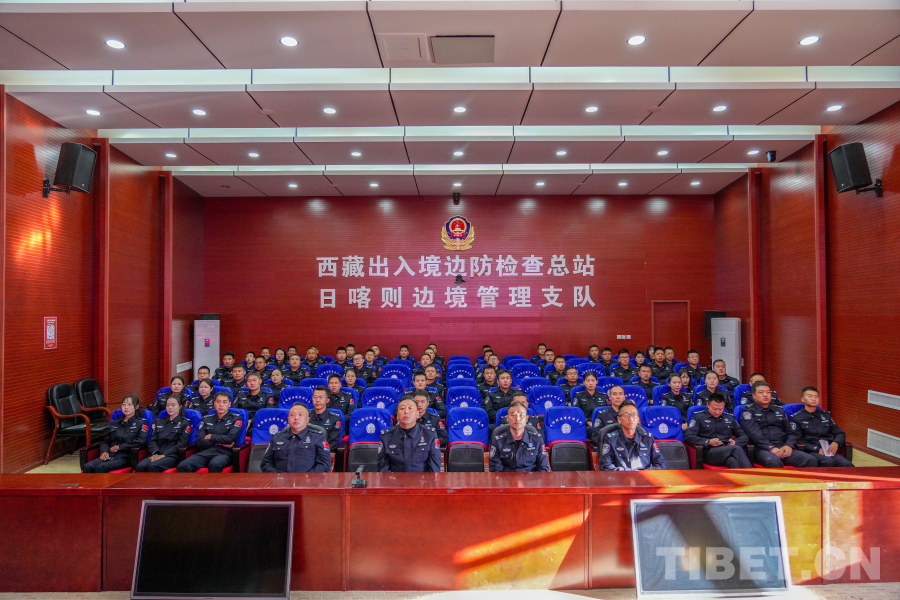 圖為日喀則邊境管理支隊(duì)機(jī)關(guān)組織民警收聽收看紀(jì)念中國人民抗日戰(zhàn)爭暨世界反法西斯戰(zhàn)爭勝利80周年大會 攝影:葉軼