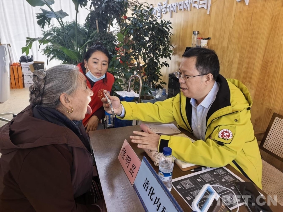 圖為“雪域高原扶陽(yáng)護(hù)心”健康義診的專家為社區(qū)群眾診療