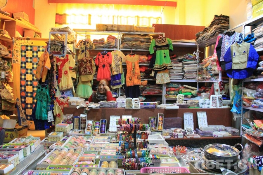 走進(jìn)市場,濃郁的尼泊爾風(fēng)格迎面而來。精致生動(dòng)的手工藝品、各色各樣的尼泊爾服飾、夸張華美的首飾、風(fēng)味多樣的香制品,構(gòu)成了極具特色的商業(yè)品類。尤其是手工藝品,一個(gè)一價(jià),各個(gè)不同,甚至有些瑕疵也不耽誤有顧客欣然購入。在這里,咖喱、巧克力、鍋具、糧食等生活用品也能買到,品類不可謂不豐富。尼泊爾店主們各有生意經(jīng),他們用不同的語言與不同的客戶交流,推銷著自己的特色商品,在討價(jià)還價(jià)中逐漸適應(yīng)在異國經(jīng)商,適應(yīng)普蘭,適應(yīng)現(xiàn)在安穩(wěn)滿足的生活。
