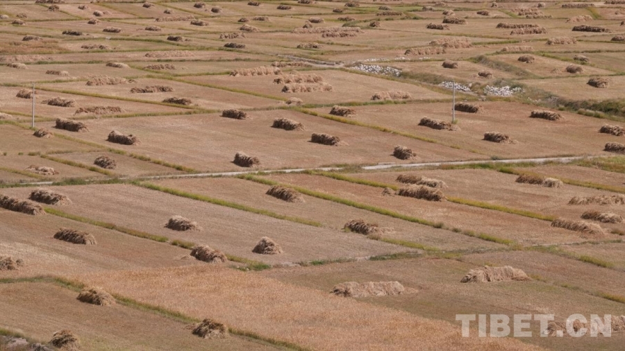 圖為田間地頭成堆的青稞 攝影:德吉卓瑪
