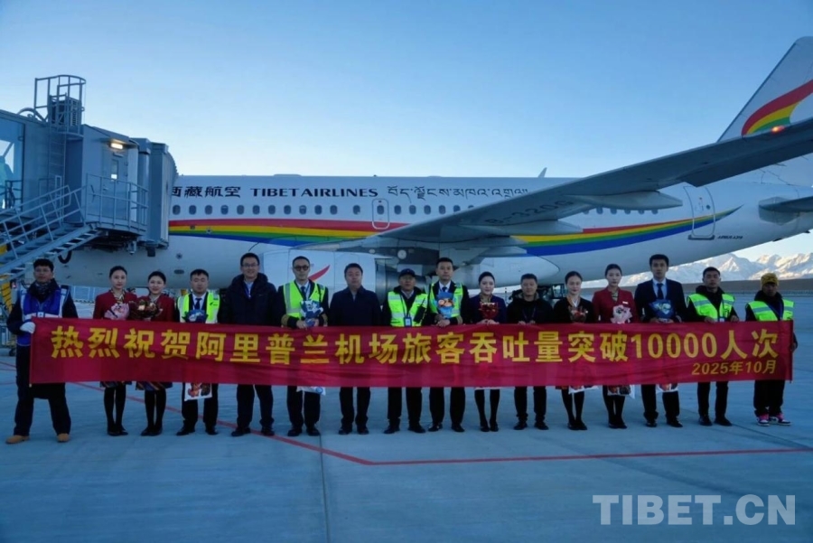 圖為阿里普蘭機(jī)場(chǎng)2025年年旅客吞吐量破萬(wàn)合影