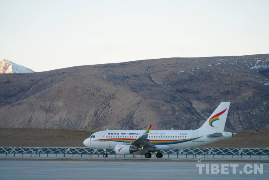 圖為10月20日西藏航空TV9705航班降落在阿里普蘭機(jī)場(chǎng)