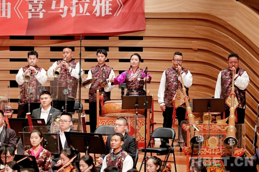 《喜馬拉雅》以世界屋脊的壯麗山河為背景,融合西藏傳統(tǒng)音樂元素與現(xiàn)代管弦樂創(chuàng)作手法,通過《緣起》《新生》《江河》《歡歌》《奔騰》《輝煌》等六個(gè)樂章,生動展現(xiàn)了西藏自然景觀的雄奇、人文歷史的厚重以及新時(shí)代西藏各族人民的幸福生活。演奏中,扎念琴、鷹笛、嗶旺、西藏大號等西藏特色樂器與交響組曲交相輝映,既保留了傳統(tǒng)音樂的純凈悠遠(yuǎn),又賦予作品強(qiáng)烈的時(shí)代氣息,勾勒出一幅雪域高原生生不息的壯美畫卷。