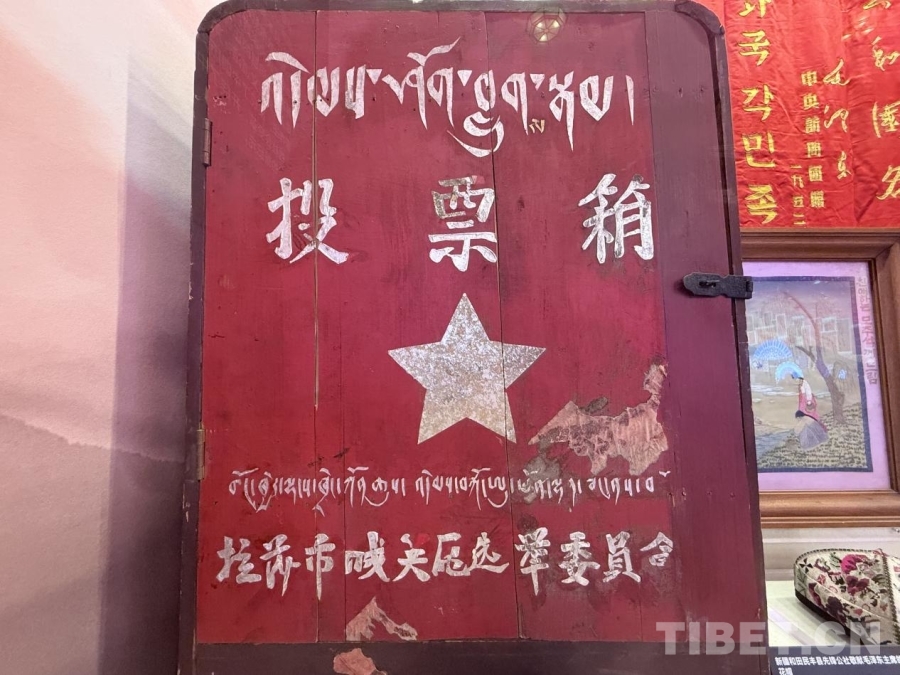 中國西藏網(wǎng)訊 在民族文化宮的展廳里,一只寫著“拉薩市城關(guān)區(qū)選舉委員會(huì)”藏漢文字的木質(zhì)投票箱,正是雪域高原民主實(shí)踐的見證。