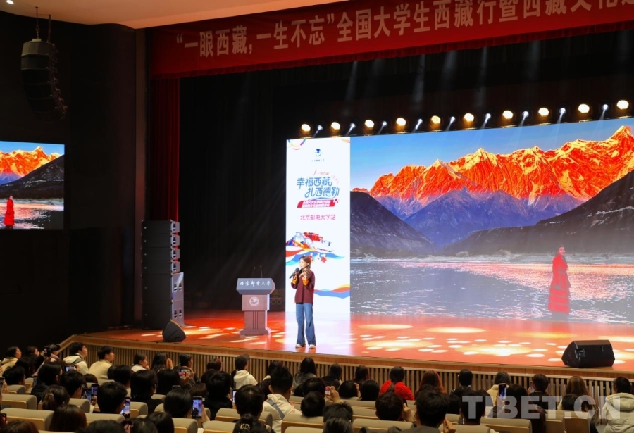 中國西藏網(wǎng)訊 “方程式是造物主獻(xiàn)給人類的詩篇,……每一個都給心里莊嚴(yán)感、靈魂感、畏懼感,你在西藏都能感受到這種(感覺)?!痹诒本┼]電大學(xué)科學(xué)會堂的舞臺上,中央廣播電視總臺主持人朱迅引用楊振寧先生的話,闡述了什么是她心中的西藏。10月30日,“一眼西藏,一生不忘”全國大學(xué)生西藏行暨西藏文化進(jìn)校園活動走進(jìn)了北京郵電大學(xué)?;顒友堉煅缸鳛榉窒砑钨e,將她與西藏的故事說與大家聽。