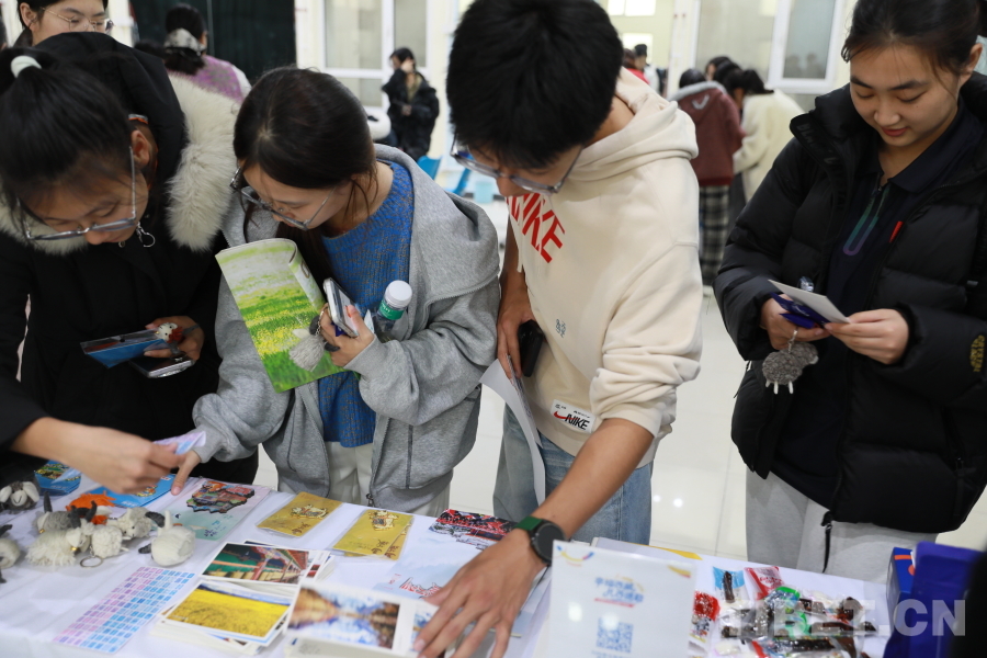 圖為活動現(xiàn)場同學(xué)們領(lǐng)取西藏相關(guān)明信片、手工文創(chuàng)及雜志。攝影:畢然