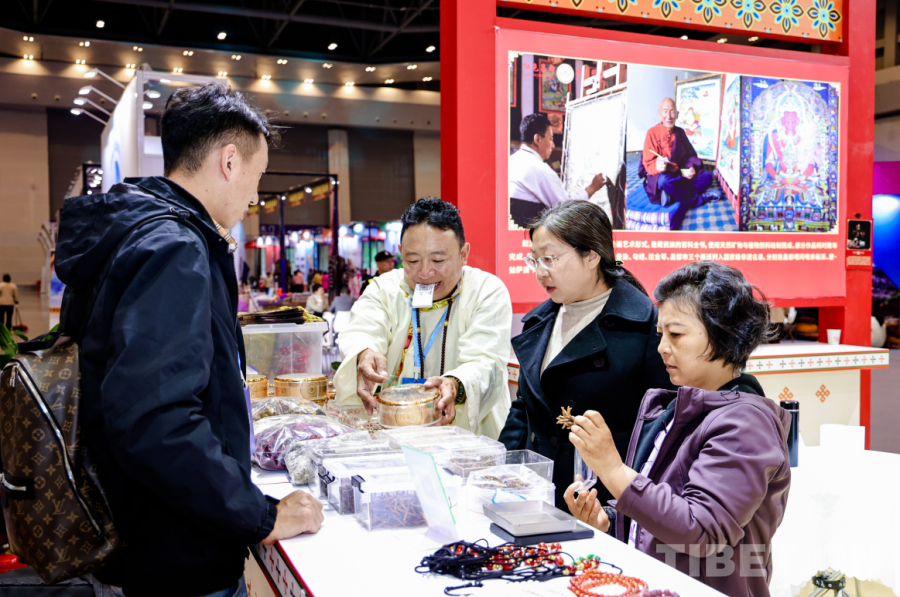 記者走進昌都展館,整個展館呈現(xiàn)藏族傳統(tǒng)建筑的典型特征,厚重的墻體、錯落有致的布局以及富有層次感的屋頂線條,精心融入康巴文化符號。昌都文旅攜9家非遺企業(yè),全方位展示唐卡、藏香、唐卡漆畫、民族手工飾品、蟲草、貝母、藏紅花等琳瑯滿目的文旅產(chǎn)品,進館參與互動、咨詢的游客絡繹不絕。