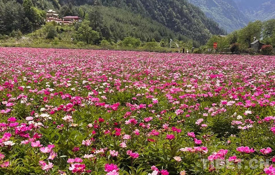 圖為最早種植芍藥時,色龍村的花海 來源:當(dāng)?shù)毓﹫D