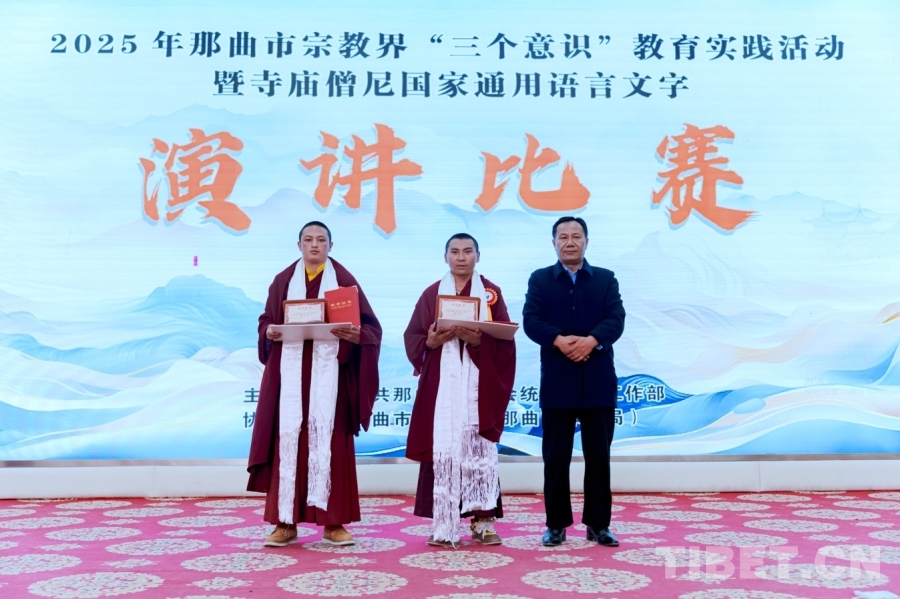 中國西藏網(wǎng)訊 11月13日,2025年那曲市宗教界“三個意識”教育實踐暨寺廟僧尼國家通用語言文字演講比賽舉行。來自那曲市10縣(區(qū))的22名寺廟僧尼站在演講臺上,用流利的普通話暢談學習心得、分享家鄉(xiāng)發(fā)展變化。
