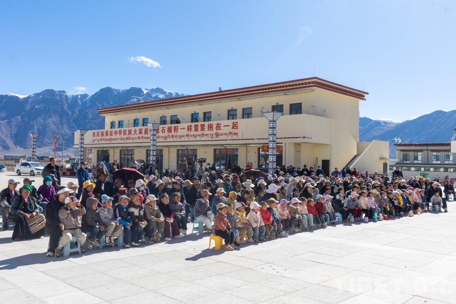 圖為山南市消防救援支隊崗拉美朵文藝隊“農(nóng)牧區(qū)暖冬消防行”巡演首演現(xiàn)場