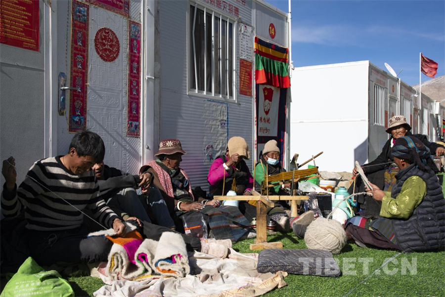 圖為定結(jié)縣郭加鄉(xiāng)白堆村村民在受災安置點前紡織羊毛,大家已恢復正常生產(chǎn)生活秩序(攝于2025年2月27日)攝影:趙振宇