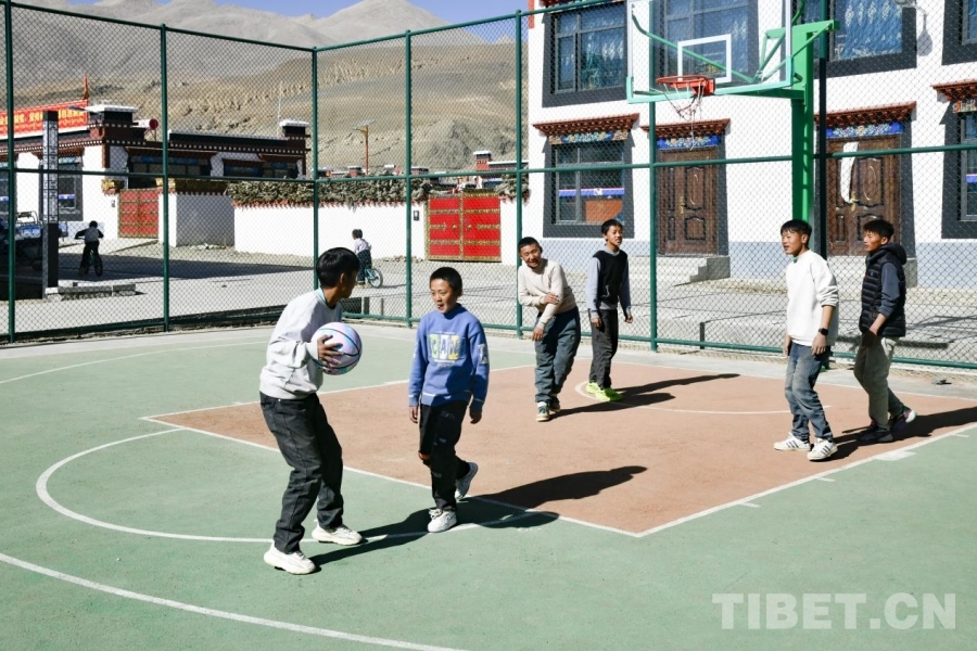 圖為在定日縣長所鄉(xiāng)森嘎村的籃球場上,一場籃球對決正在開展。攝影:趙振宇