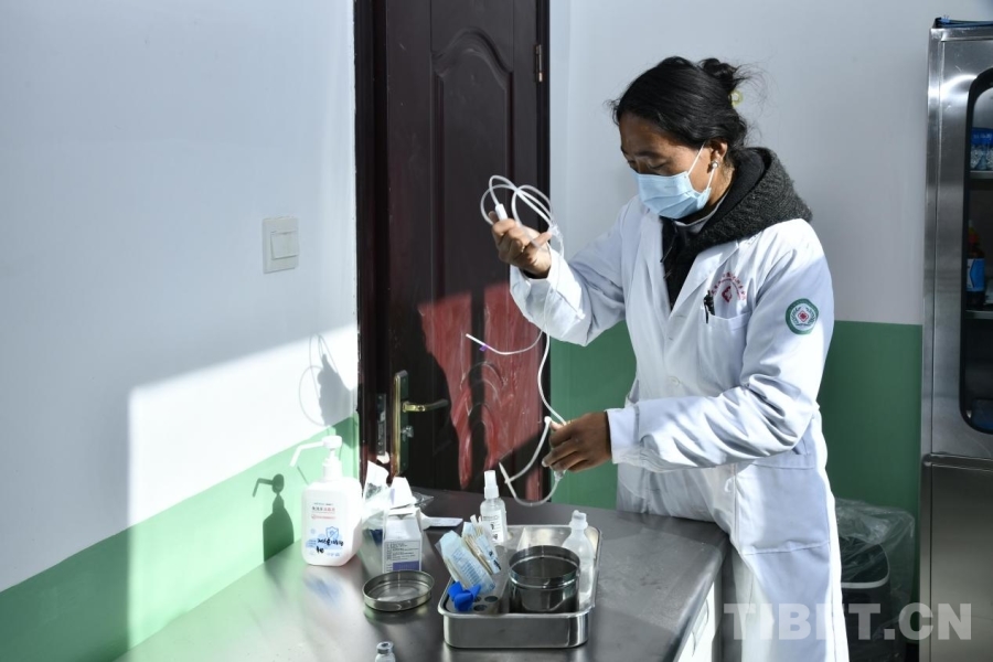 圖為在定日縣長所鄉(xiāng)森嘎村新修建的村衛(wèi)生室內(nèi),護士正在做醫(yī)療準備。攝影:趙振宇