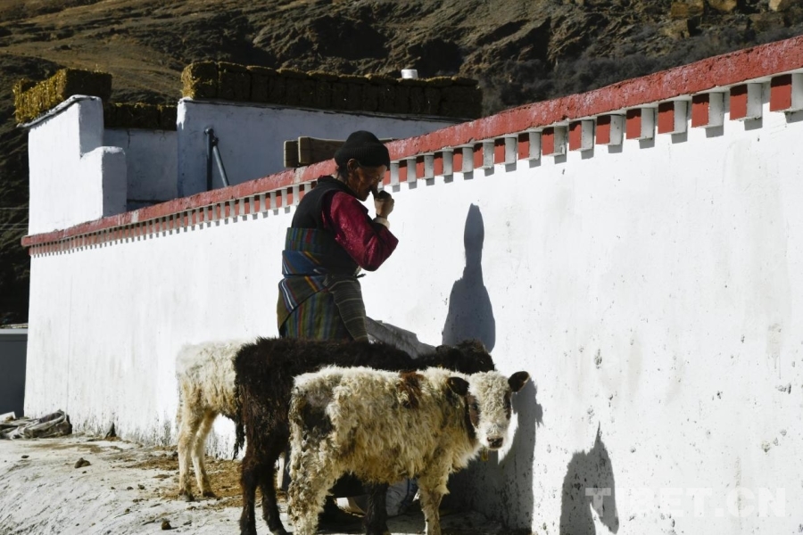 圖為在定日縣長所鄉(xiāng)古榮村,村民正在為小牛梳理毛發(fā)。攝影:趙振宇