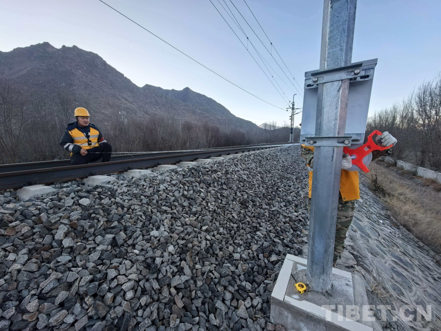 “拉薩南下行進(jìn)站咽喉攝像機(jī)通信設(shè)備檢修整治‘天窗’作業(yè),作業(yè)人員已抵達(dá)作業(yè)現(xiàn)場,準(zhǔn)備就緒?!爆F(xiàn)場防護(hù)員騰夢飛按時和調(diào)度完成施工前報備。9時25分,調(diào)度命令下達(dá),施工作業(yè)準(zhǔn)時開始。職工們一字排開,帶著工具材料進(jìn)入網(wǎng)圍欄內(nèi)。冬日的高原寒風(fēng)凜冽,盡管穿著厚厚的防寒服,但大家不由得打了幾個寒戰(zhàn)。