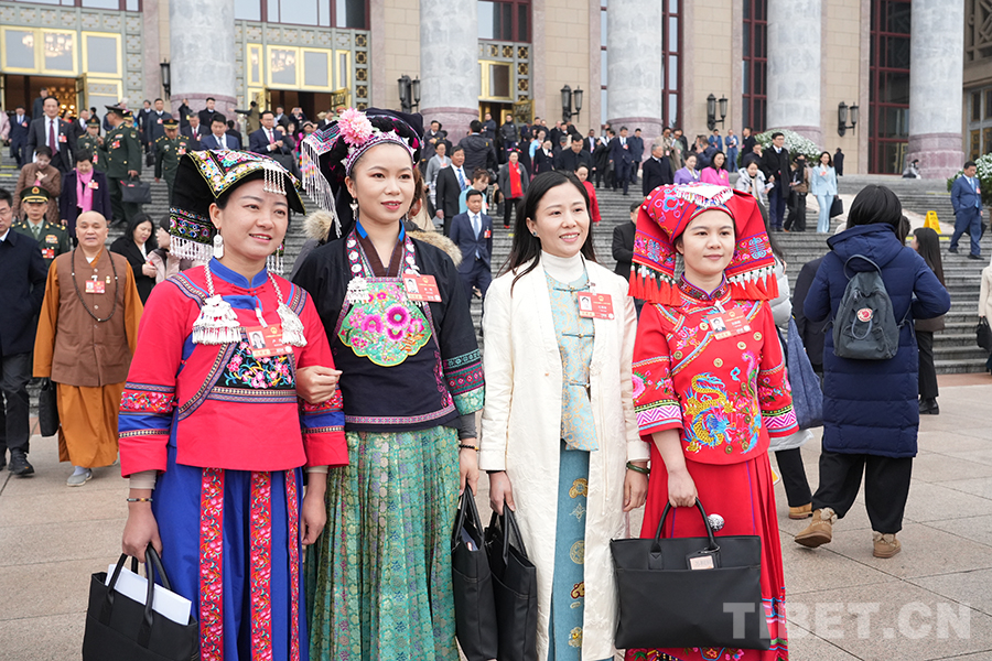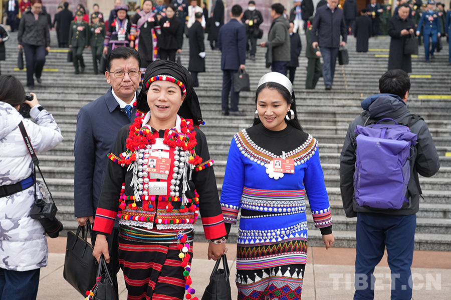 中國西藏網(wǎng)訊 3月5日上午,十四屆全國人大四次會(huì)議在人民大會(huì)堂開幕。開幕會(huì)后,身著民族服飾的人大代表們信心滿懷走出會(huì)場。(中國西藏網(wǎng) 記者/邊子捷 劉莉)