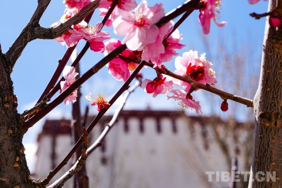 這座海拔3650米的“日光之城”,在漫長(zhǎng)的冬日里,一直以純粹到幾乎透明的藍(lán)面世。而當(dāng)春分的腳步悄然臨近,一場(chǎng)由喜馬拉雅山脈南麓山谷悄然潛入的暖濕氣流,終于鼓足了勇氣,輕輕叩響了紅山腳下的土地。于是,布達(dá)拉宮醒了,是被花叫醒的。