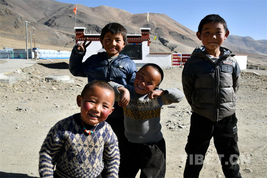2026年1月,日喀則市定日縣長所鄉(xiāng)古榮村的受災(zāi)兒童在新居前笑容燦爛 攝影:趙振宇