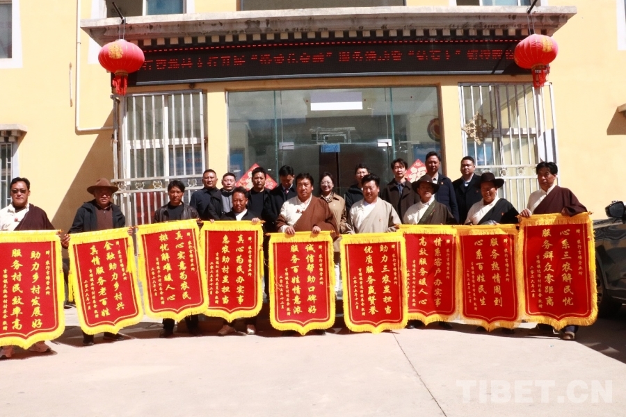 察雅縣吉塘鎮(zhèn)村民為送來“金融活水”的農(nóng)行察雅縣支行吉塘營業(yè)所獻上錦旗