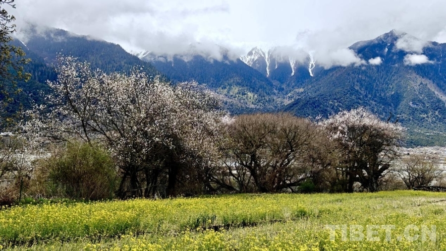 波密縣境內,近處油菜花金黃、桃樹粉黛,與遠處的雪山、森林交相輝映,繪就一幅絕美的生態(tài)畫卷。攝影:次旦拉姆