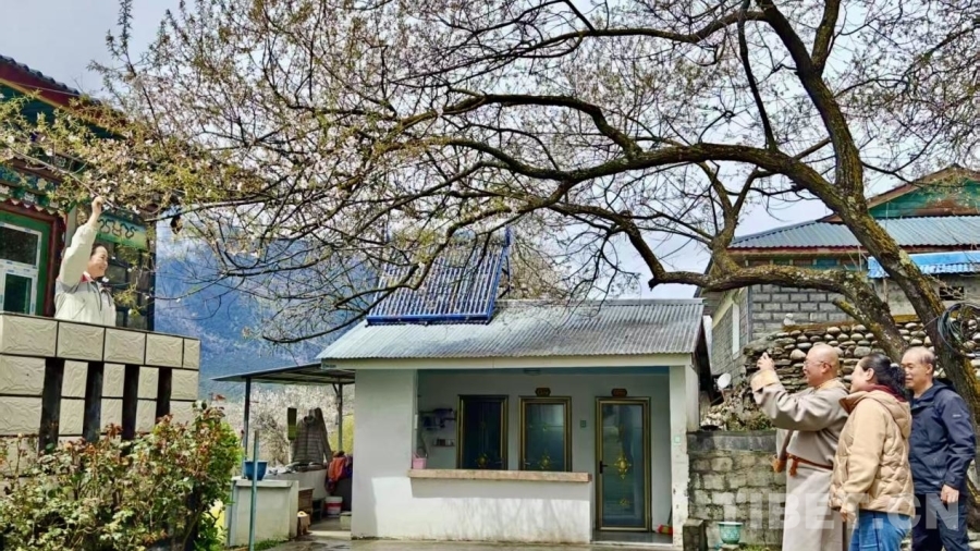 游客在波密縣境內桃樹下拍照打卡 攝影:次旦拉姆