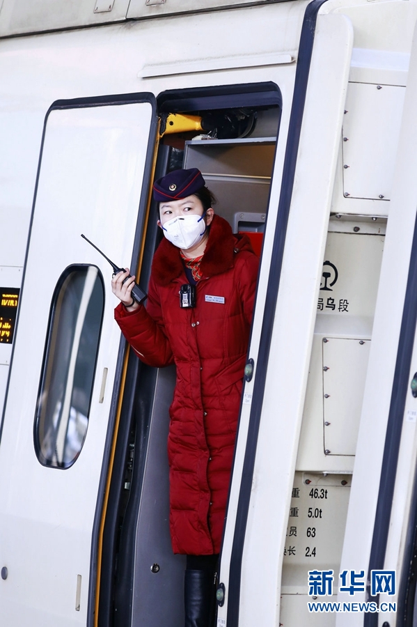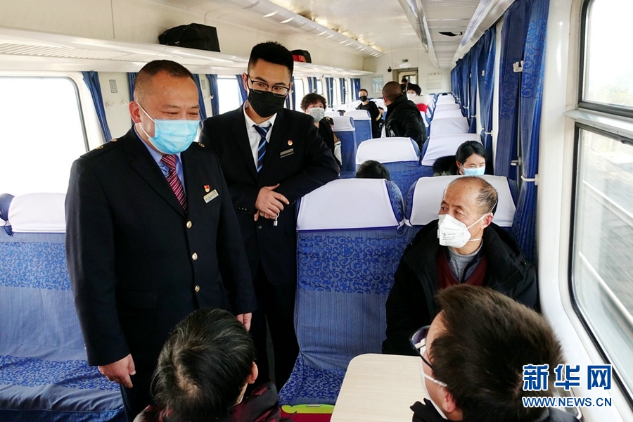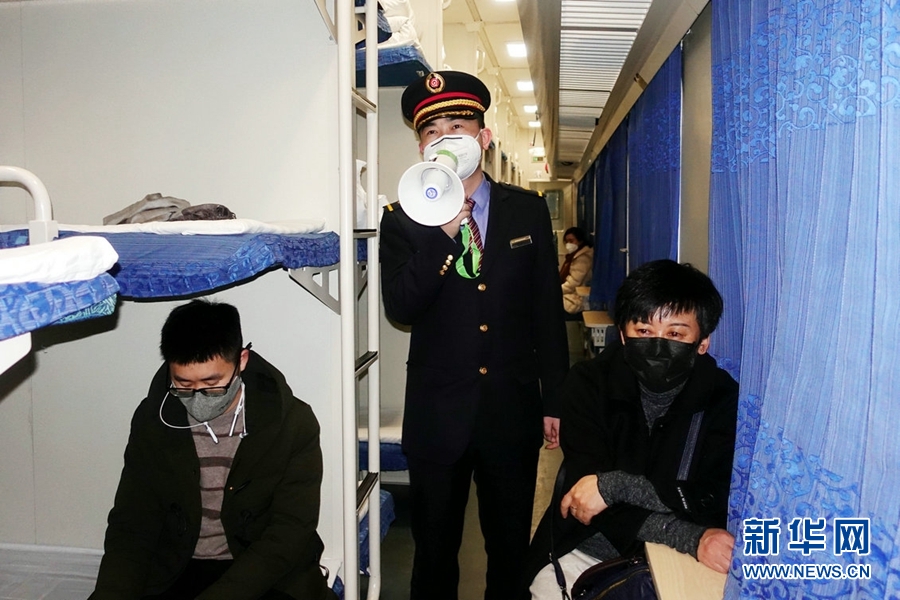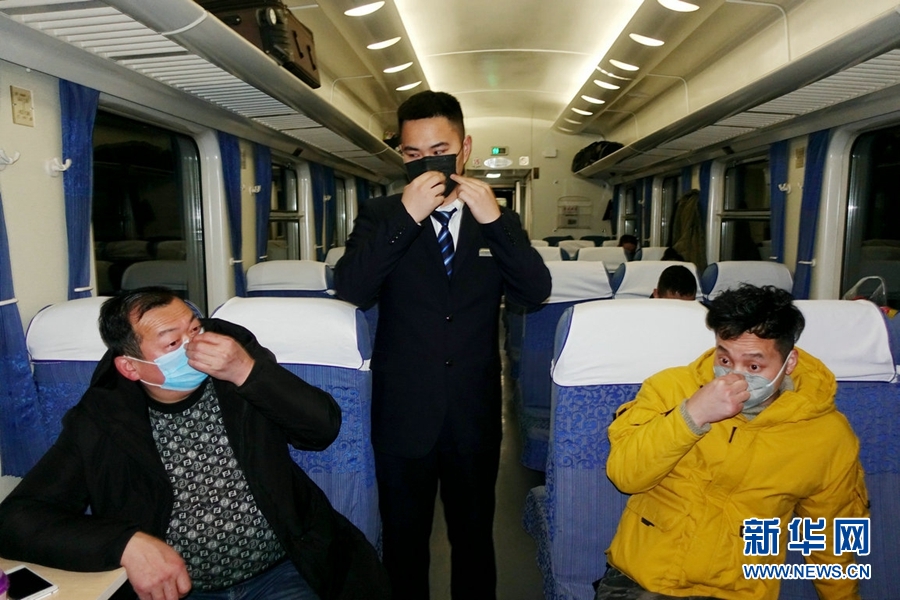 西寧客運(yùn)段成都三組乘務(wù)員為旅客宣傳防疫知識。新華網(wǎng) 郝寶君 攝