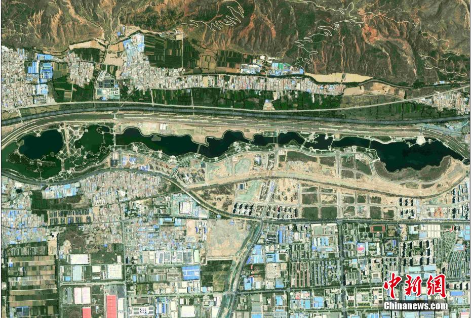 圖為衛(wèi)星視角下的青海省會(huì)西寧市的北川河濕地。青海省地質(zhì)調(diào)查院 攝