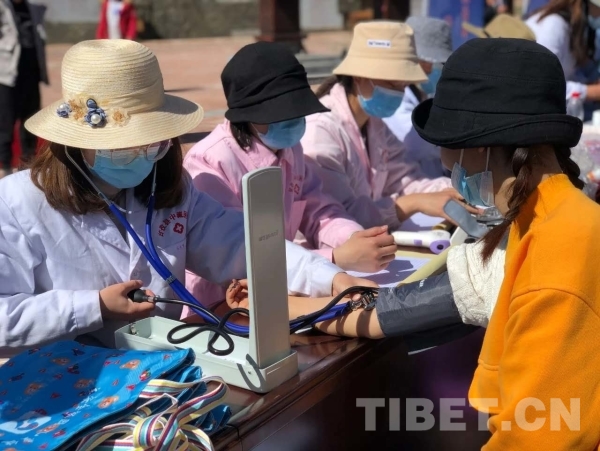 圖為醫(yī)務(wù)人員為群眾測(cè)量血壓