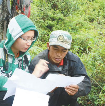 余文武(右)和科研人員開展滇金絲猴保護(hù)情況調(diào)查。賴建東攝