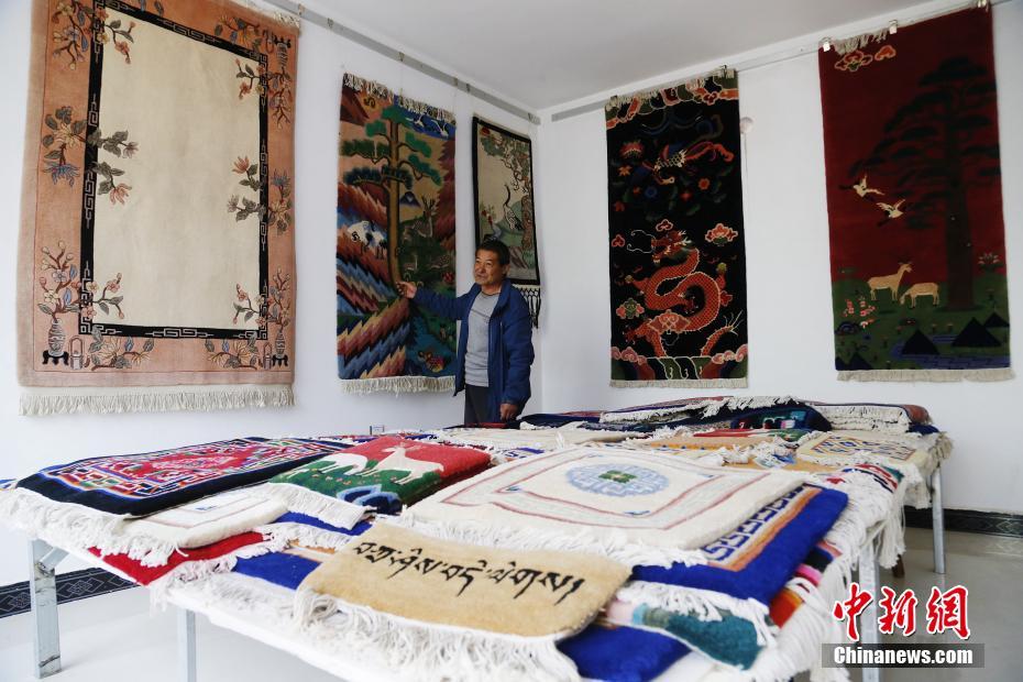 5月8日,在青海省湟中縣加牙村加牙藏族織毯技藝傳習(xí)所內(nèi),加牙藏毯第七代傳人楊永良展示制作精美的藏毯。楊永良介紹,加牙村有著300多年的織毯歷史,加牙藏毯色澤艷麗不褪色,質(zhì)地堅(jiān)硬而富有彈性,可以使用近200年。獨(dú)特的編制技法及濃郁的民族特色使加牙藏毯受到眾多國內(nèi)外藏毯愛好者的喜愛。中新社記者 馬銘言 攝