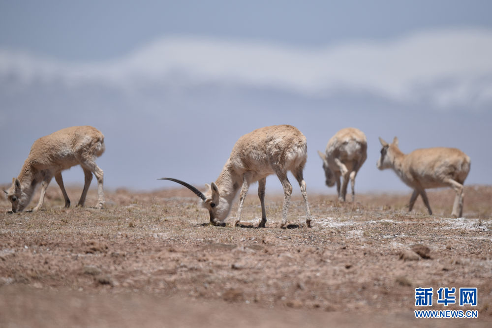 5月15日,幾只藏羚羊在可可西里地區(qū)活動(dòng)。新華社記者 吳剛 攝