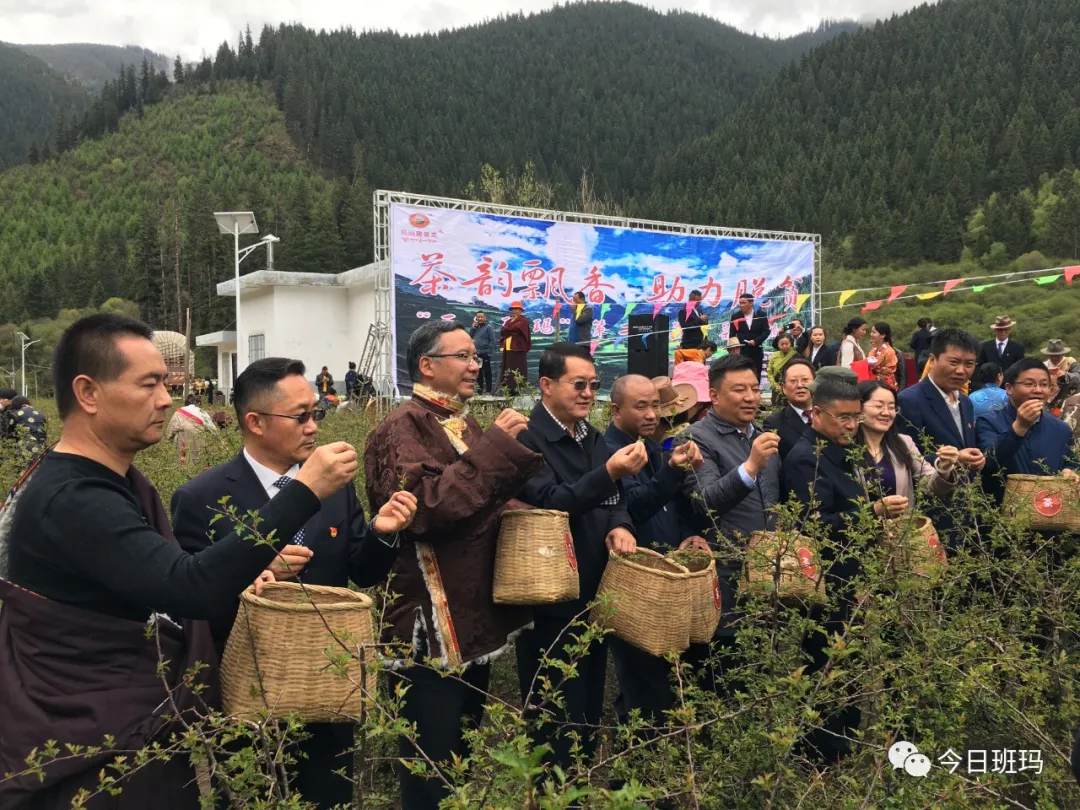 六月的班瑪大地生機(jī)勃發(fā)、草木欣榮,美麗的瑪可河畔碧波蕩漾、茶韻飄香。6月6日,在首個(gè)“國(guó)際茶日”剛剛過(guò)去不久,由中共班瑪縣委、班瑪縣人民政府、青海省瑪可河林業(yè)局主辦,中共班瑪縣委宣傳部、班瑪縣文體旅游廣電局、班瑪縣林業(yè)和草原局、班瑪縣扶貧開(kāi)發(fā)局、班瑪縣藏雪茶產(chǎn)業(yè)開(kāi)發(fā)有限責(zé)任公司承辦的“三色班瑪”第二屆藏雪茶采摘節(jié),在省瑪可河林業(yè)局院內(nèi)熱烈舉行。在縣副縣級(jí)以上領(lǐng)導(dǎo)干部,各鄉(xiāng)鎮(zhèn)黨委書(shū)記、鄉(xiāng)鎮(zhèn)長(zhǎng),縣級(jí)各部門各單位負(fù)責(zé)人,瑪可河林業(yè)局干部職工,各村黨支部書(shū)記和燈塔鄉(xiāng)廣大牧民群眾參加了活動(dòng)?;顒?dòng)特別邀請(qǐng)毗鄰的四川省壤塘縣縣委常委、宣傳部部長(zhǎng)孫???,壤塘縣人民政府副縣長(zhǎng)孫宏斌參加??h委常委、縣政府常務(wù)副縣長(zhǎng)韓尚軍主持活動(dòng)。省瑪可河林業(yè)局黨委書(shū)記韓才邦宣布“三色班瑪”第二屆藏雪茶采摘節(jié)開(kāi)幕。