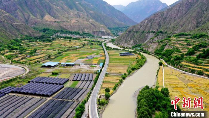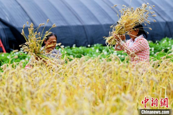 甘肅省舟曲縣:白龍江畔麥浪翻滾收割忙