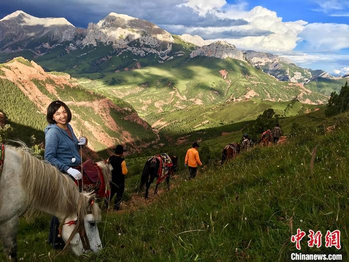 圖為2018年8月,劉馨濃(左)與接待家庭向?qū)円黄鹪O(shè)計騎馬線路。 中新社發(fā) 山水自然保護中心 供圖