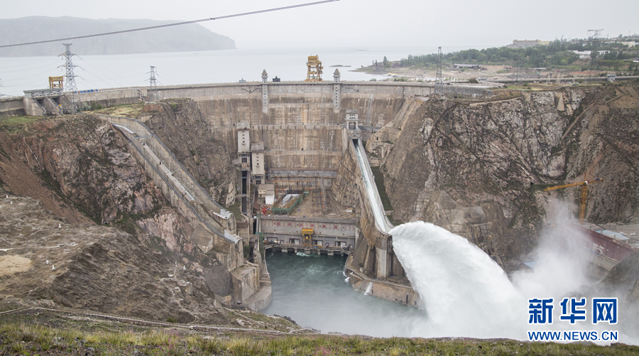 6月18日,龍羊峽水電站中孔提門泄水。 新華社 張勇 攝