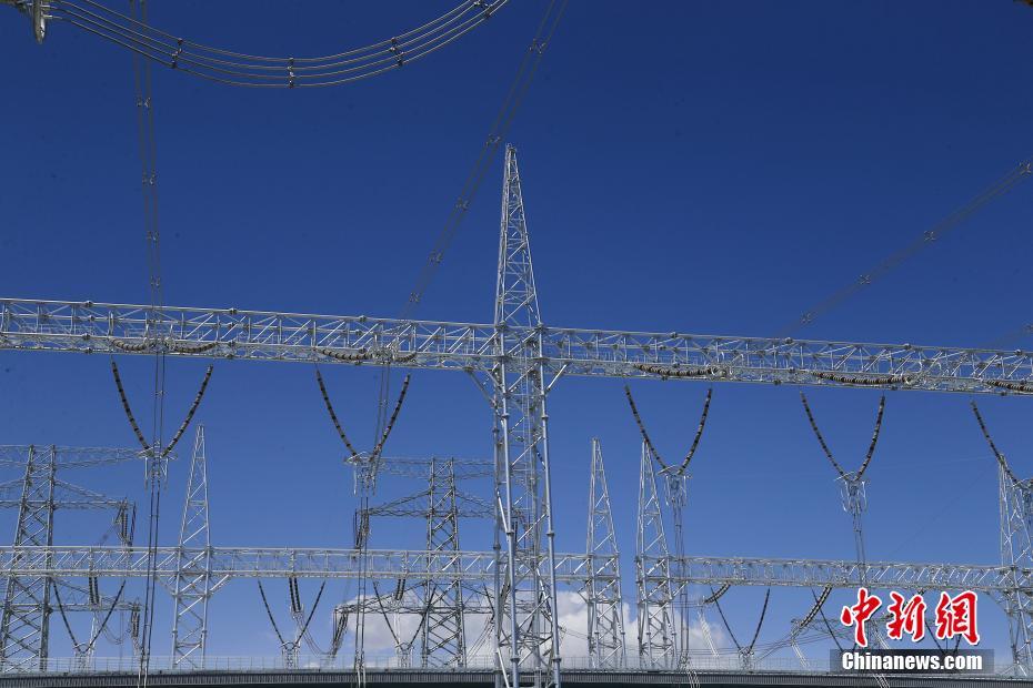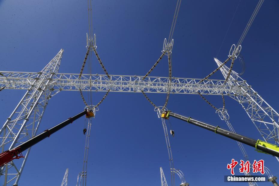 6月23日拍攝的青海省海南藏族自治州共和縣±800千伏特高壓青南換流站內(nèi)的驗(yàn)收引流線。中新社記者 馬銘言 攝