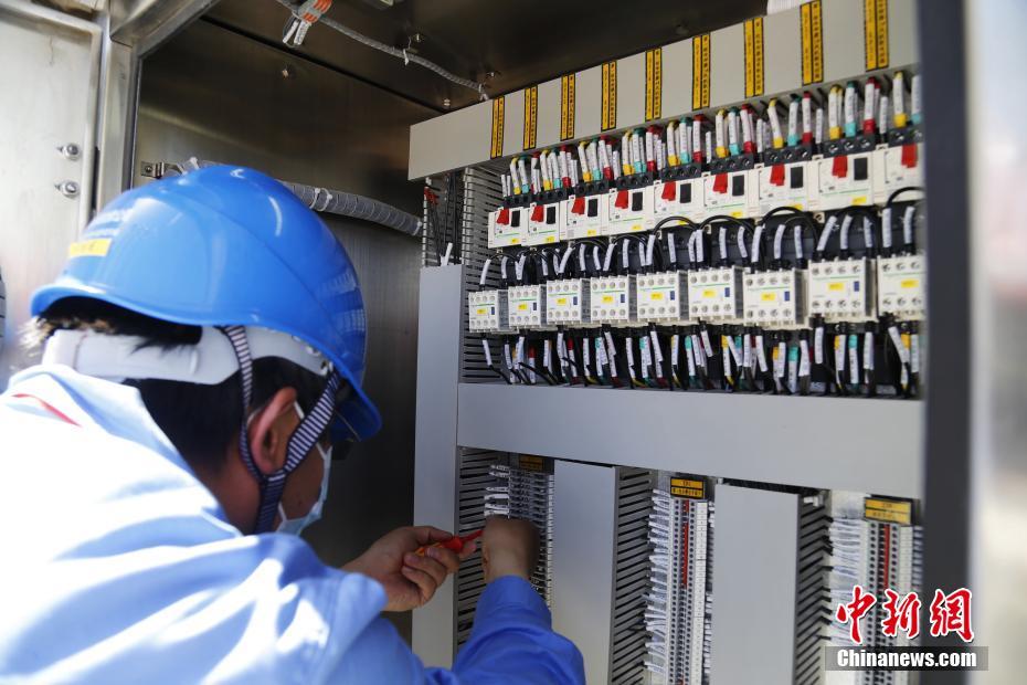 6月23日,在青海省海南藏族自治州共和縣±800千伏特高壓青南換流站,工作人員正在調(diào)試設(shè)備。中新社記者 馬銘言 攝