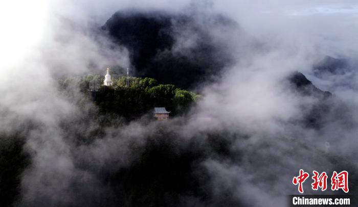 云霧下的白塔?!⒅铱?攝