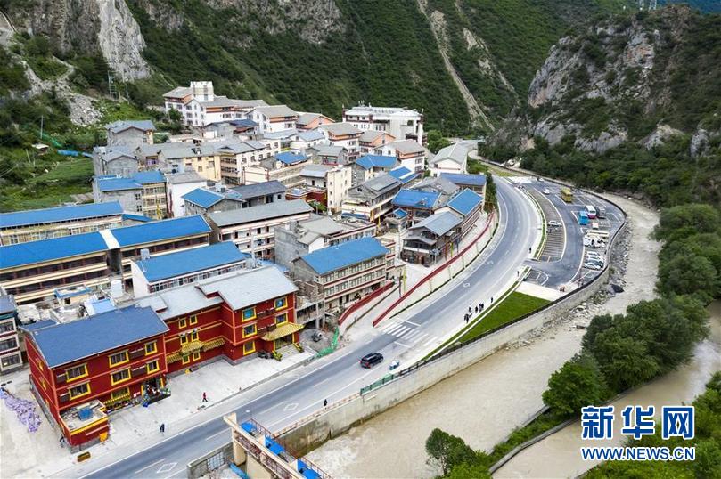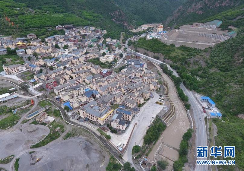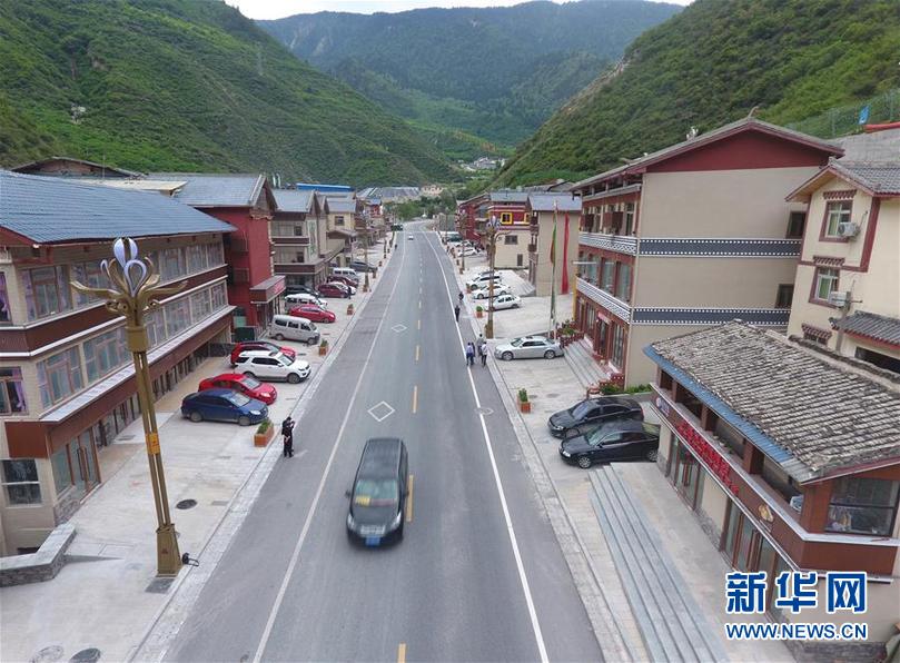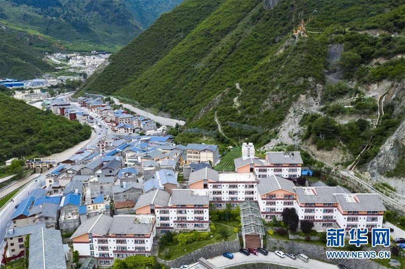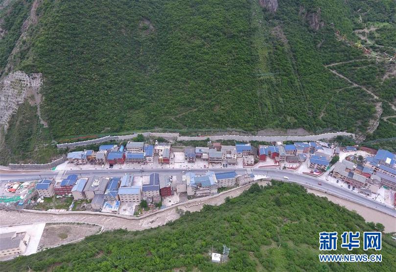 九寨溝地震震中九寨溝縣漳扎鎮(zhèn)新貌(無人機(jī)照片,6月18日攝)。 新華社記者 劉坤 攝