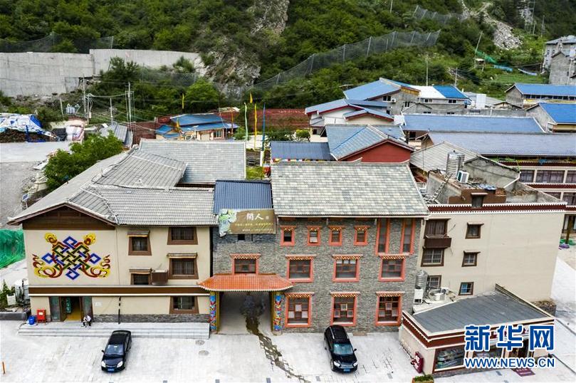 四川省阿壩藏族羌族自治州九寨溝縣漳扎鎮(zhèn)新建的用于旅游接待等功能的藏式風(fēng)格民居(無人機(jī)照片,6月18日攝)。新華社記者 沈伯韓 攝