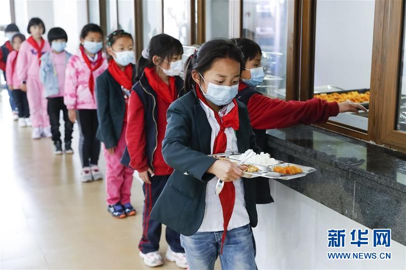 四川省阿壩藏族羌族自治州九寨溝縣九寨溝小學(xué)(原漳扎鎮(zhèn)小學(xué))的學(xué)生在食堂排隊打飯(6月18日攝)。 新華社記者 沈伯韓 攝