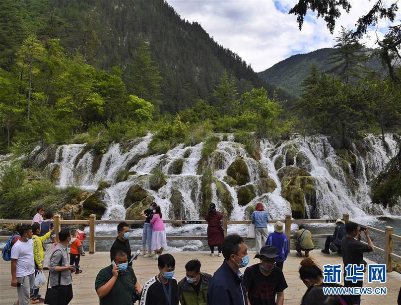 游客在九寨溝景區(qū)游玩(6月18日攝)。 新華社記者 劉坤 攝