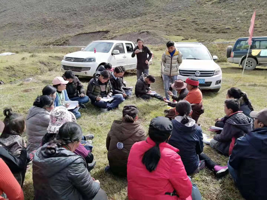 班瑪多杰去牧區(qū)宣傳義務(wù)教育。受訪對象供圖