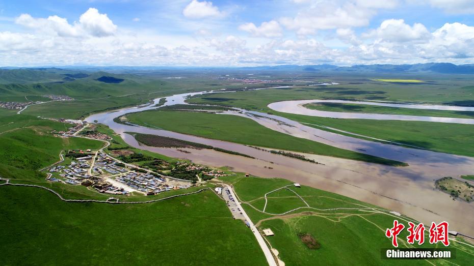 黃河九曲第一灣位于四川省阿壩藏族羌族自治州若爾蓋縣唐克鎮(zhèn),此處是四川、青海、甘肅三省交界處,黃河水在這里形成一個巨大的回灣,被稱為黃河九曲第一灣。黃河和白河將這里的草原分割成無數(shù)河州、小島,水鳥翔集,澄河蜿蜒曲折,清澈的河流水勢平緩,藍天白云,綠草繁花,帳篷炊煙,牛羊駿馬,盤旋的雄鷹,如詩如畫,氣象萬千。