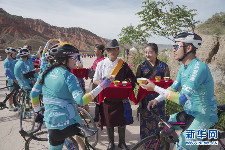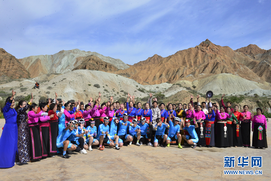 圖為“挑戰(zhàn)2020”環(huán)湖精英行“網(wǎng)紅”團隊在貴德國家地質(zhì)公園準備騎行。新華網(wǎng) 魚昊 攝