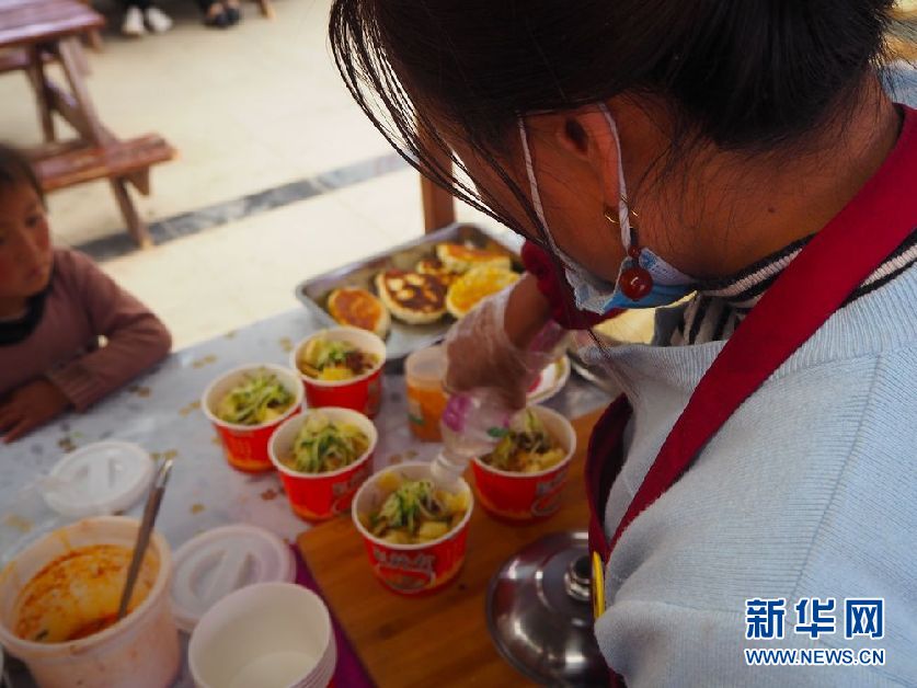 8月11日,尖扎縣昂拉鄉(xiāng)德吉村村民角巴措在自家民宿內(nèi)為旅客送食品。新華社記者 張龍 攝