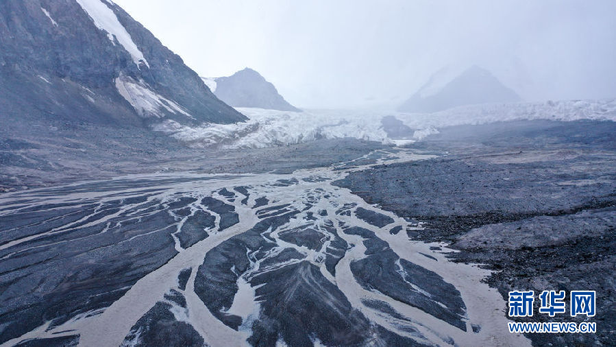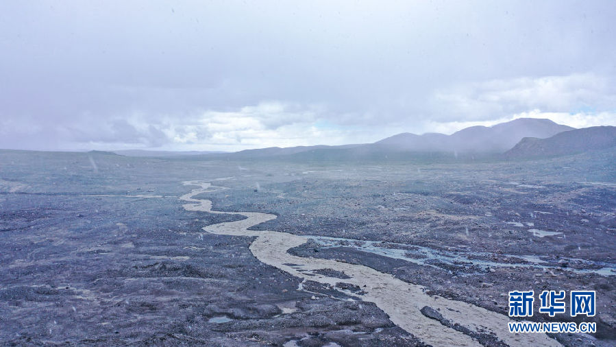 這是8月15日拍攝的崗加曲巴冰川融水形成的尕爾曲(無人機(jī)照片)。新華社記者 吳剛 攝