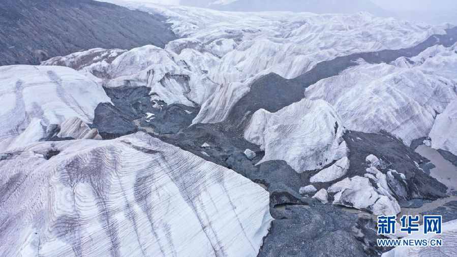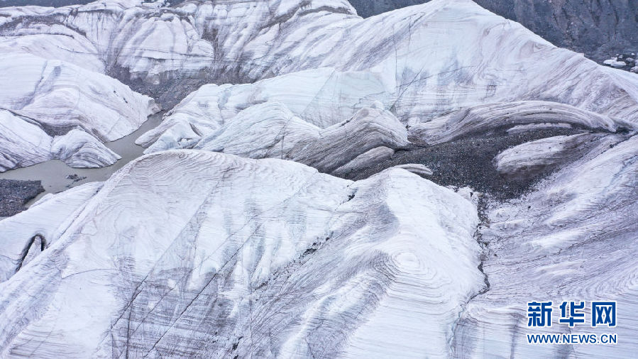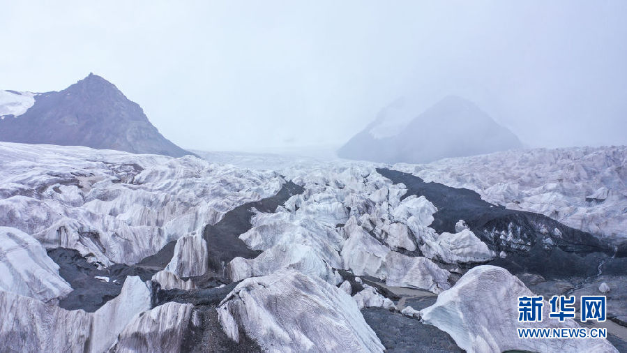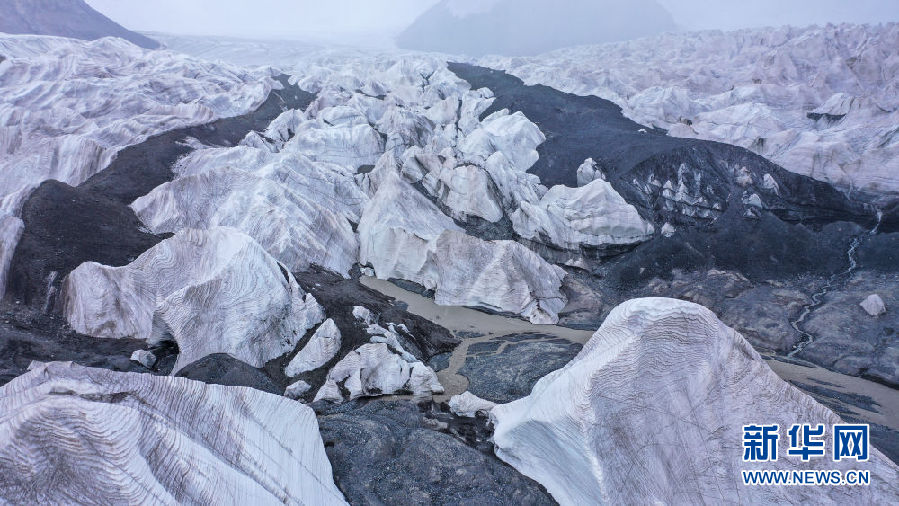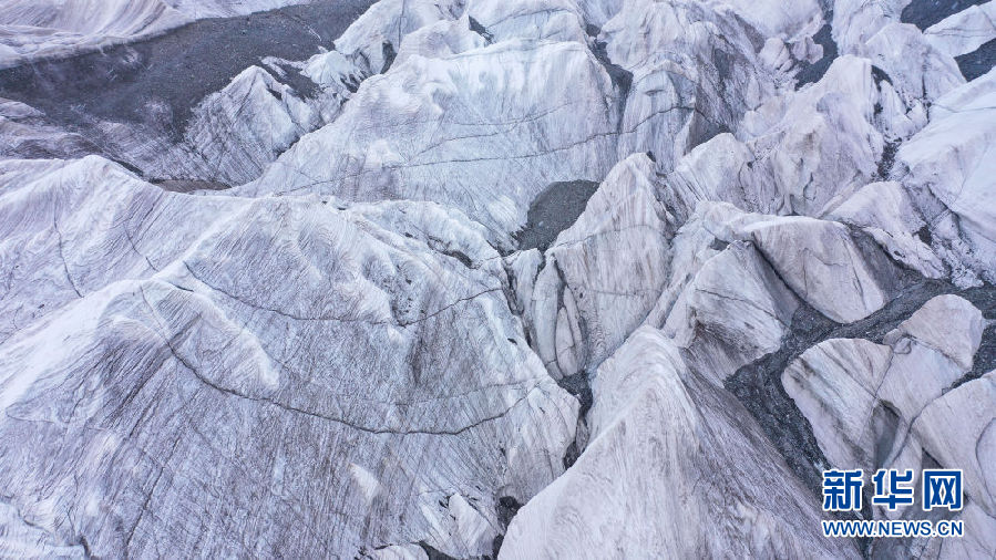 位于青海省玉樹藏族自治州的崗加曲巴冰川,坐落于長江源園區(qū)的各拉丹冬雪山東坡,從空中俯瞰,層疊的冰塔顯得尤為壯觀。