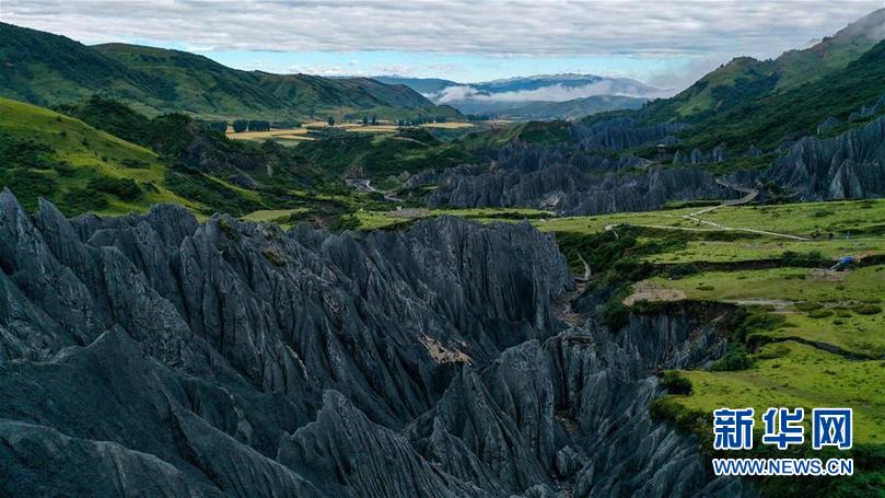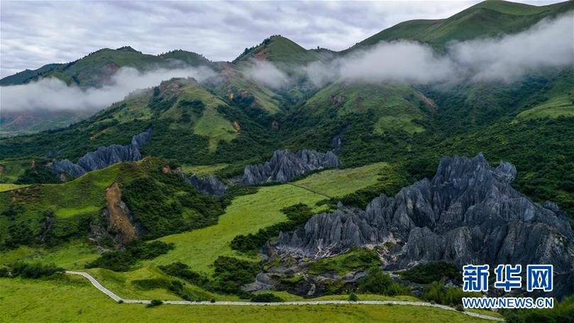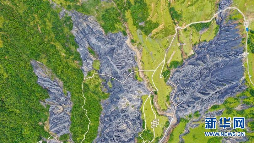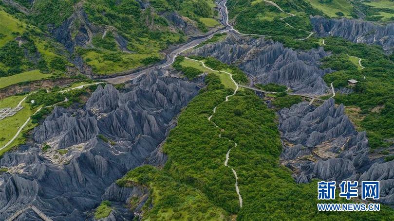 8月21日在四川省甘孜藏族自治州道孚縣拍攝的墨石公園一景(無人機照片)。新華社記者 王曦 攝